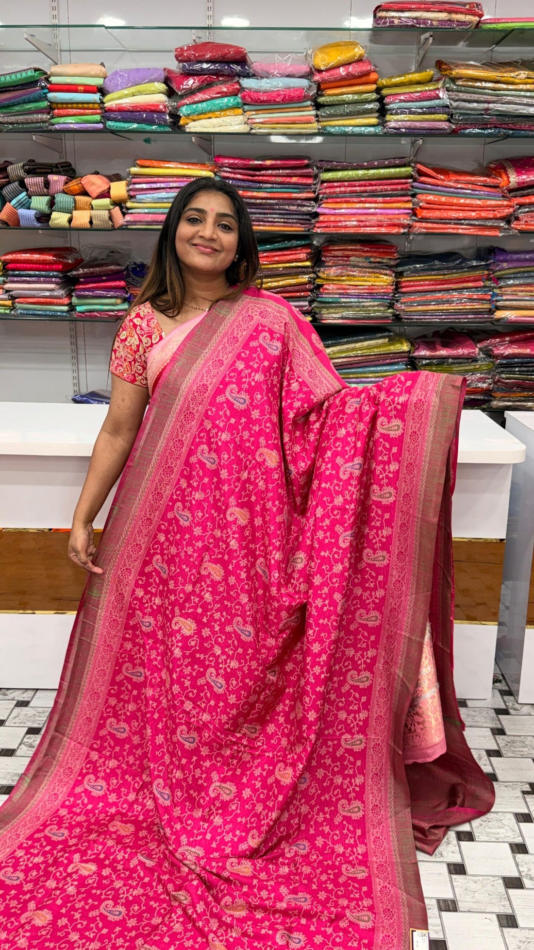 Dola silk sarees represent a pinnacle of traditional Indian weaving, crafted from premium silk that...