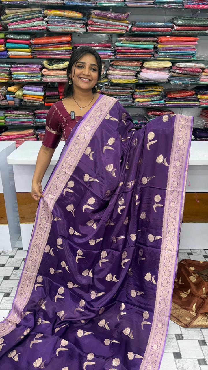Discover the timeless elegance of our Russian Crepe Saree, crafted from premium crepe fabric renowned...